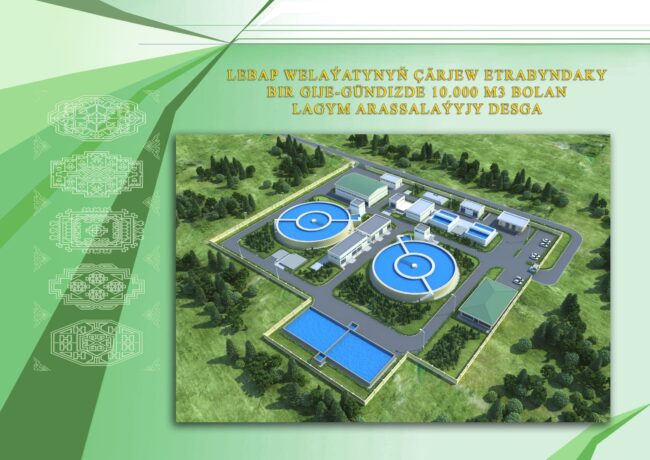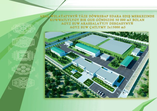 Arkadag şehrinde bulunan, kapasitesi bir gece-gündüzde 50 000 m³ içme suyu arıtma tesisinin inşaatı. İş Ortağı: DOST Gurluşyk, Söwda, Önümçilik Kategori: İnşaat Tarih: 2019-2023